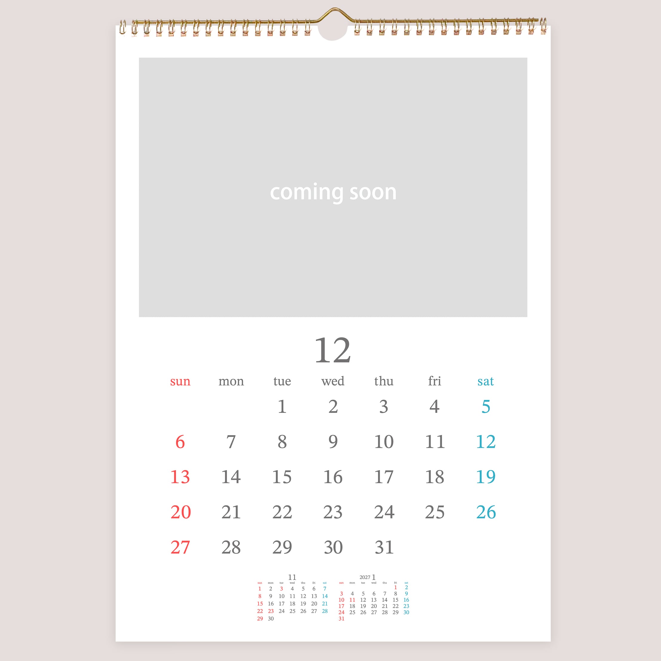 2026年1月、日曜始まりリング綴じ壁掛けカレンダーです。